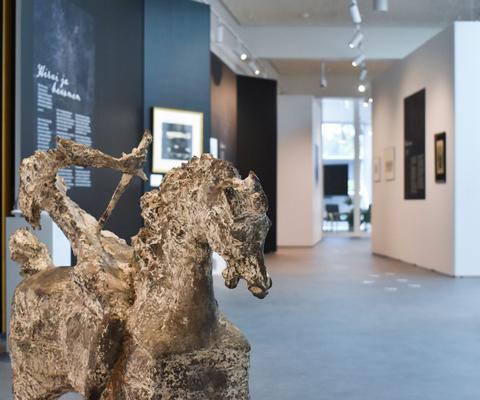 Pitkä kirjahyllyrivi Raision kirjastossa