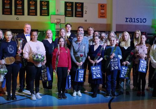 Sählyn pelaaja kuljettaa palloa parkettia pitkin.