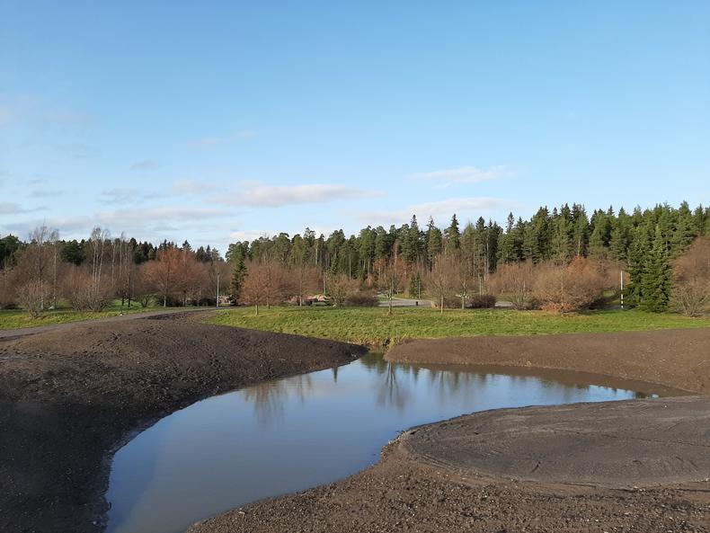 Lammikon rannalle on istutettu kosteikko- ja vesikasveja.