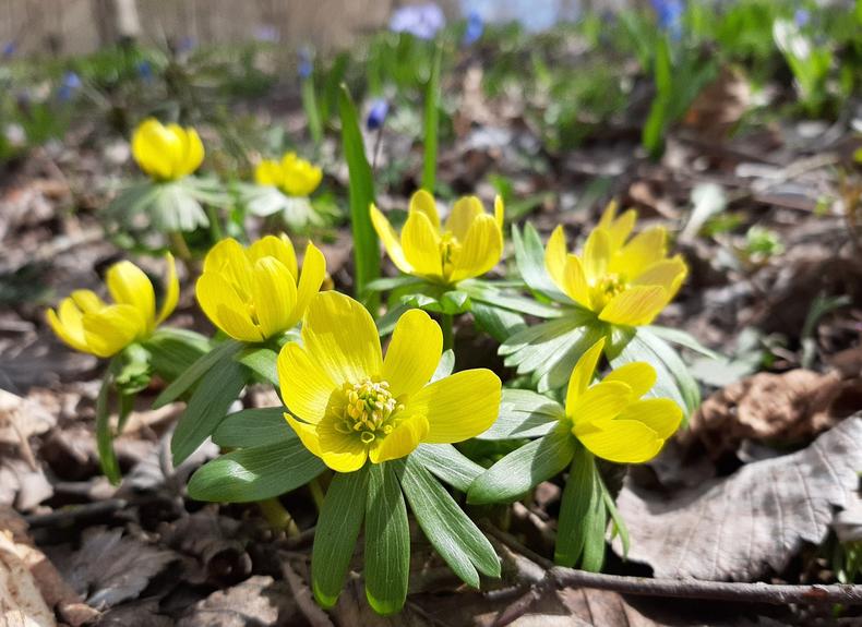 Ensimmäisiä kukkijoita ovat keltaiset talventähdet, lumikellot ja kevätlumipisarat.