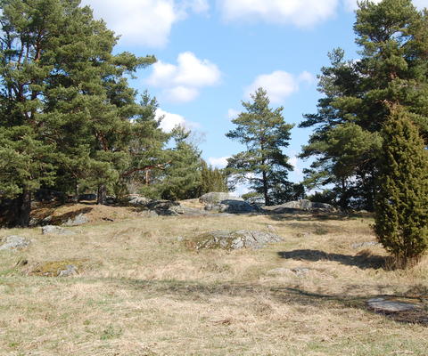 Kivistä koottu medaljongin kuvio Karmelinpuistossa.