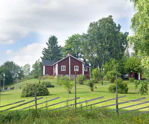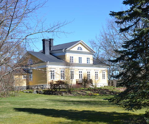 Upea kartano maalaismaisemassa. Kuppikalliot ovat rautakautisia uhripaikkoja. Kallioon hakattuihin kuoppiin uhraamalla turvattiin tulevaa satoa.