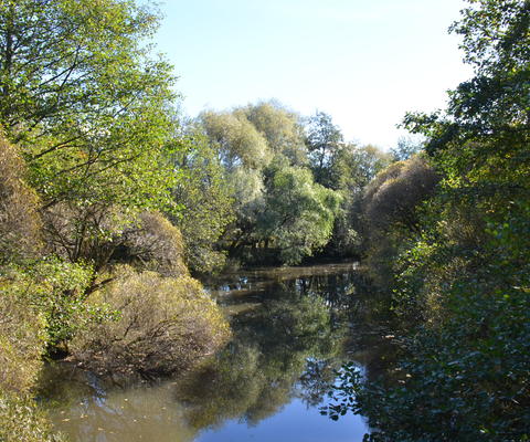 Raisionjoen varrella on reheväkasvuisia  tervaleppiä ja pajuja.