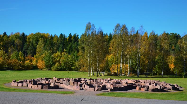 Karmelinpuiston erikoisuus on graniitista luotu kivilabyrintti.
