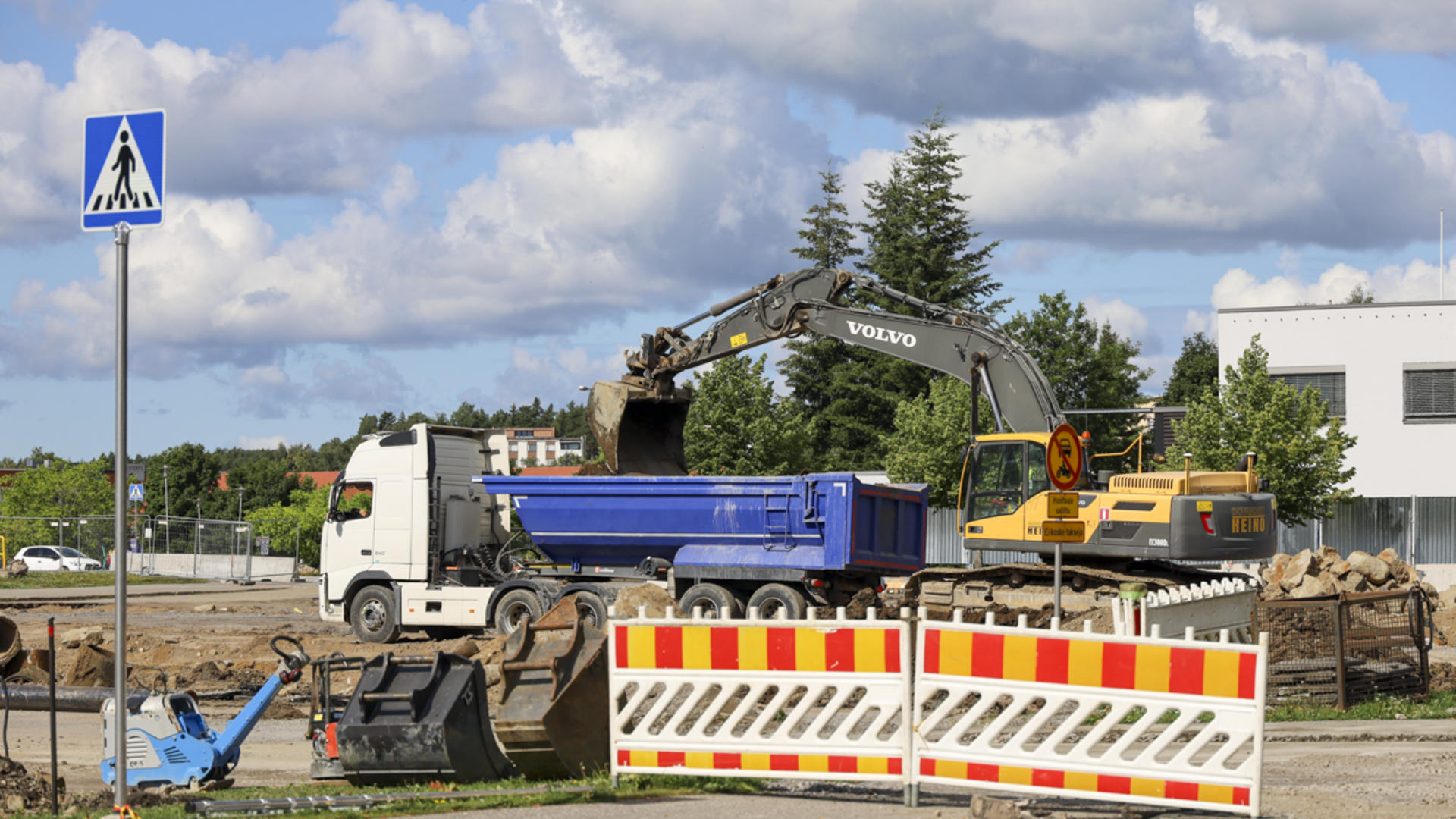 Raskaan liikenteen määrä kasvaa Tiedonpuiston työmaalla. Tienkäyttäjiltä toivotaan erityistä varovaisuutta.